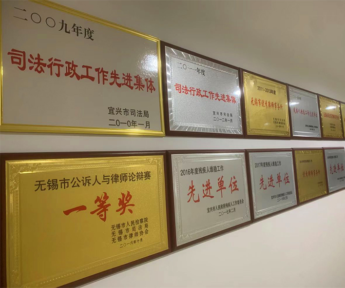 2014 通过了中国IS09001质量管理体系认证;被评为"2014-2015年无锡市优秀律师事务所"